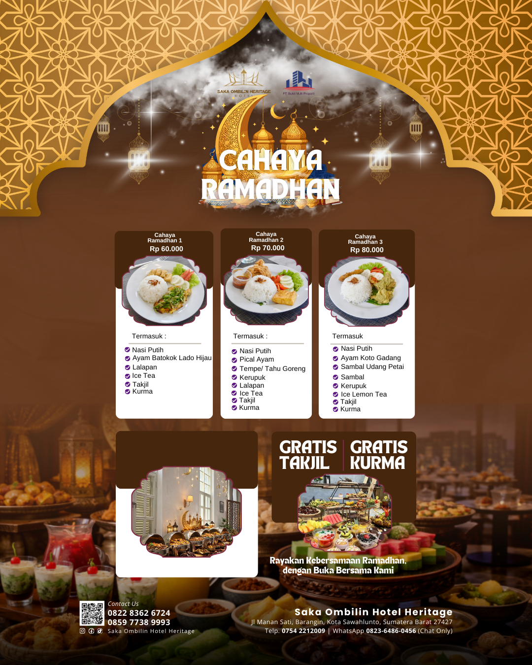 Cahaya Ramadhan, Saatnya Berbagi & Bersantap. Nikmati momen berbuka puasa dengan sajian istimewa di Saka Ombilin Heritage Hotel